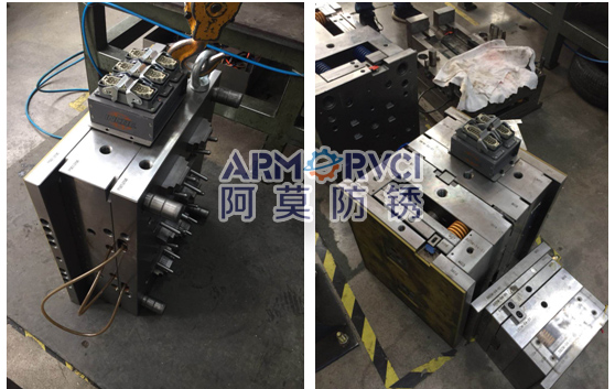 b) 金屬模具冷卻,冷卻過程中用VCI氣相防銹膜或者VCI氣相防銹紙蓋住